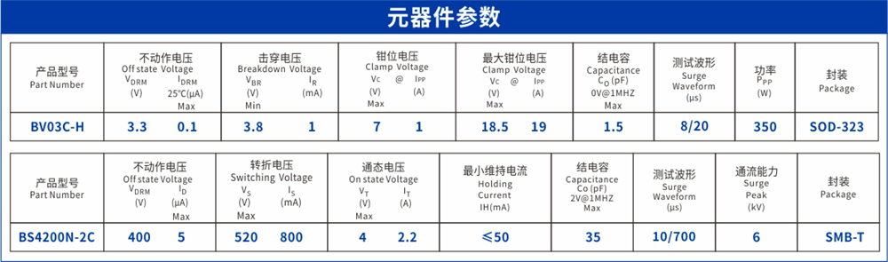 正如上述千兆網(wǎng)口防護(hù)解決方案,第一級防護(hù),檳城電子推薦使用二合一封裝的BS4200N-2C,該器件既能保證殘壓較低的同時又可以承受較高的工頻耐壓,滿足ITU-T K.21 IEC6100-4-5等標(biāo)準(zhǔn)測試要求,并支持對地AC230V電力線搭接。通過使用BS4200N-2C進(jìn)行共模防護(hù),將浪涌電流引流至大地,防止大浪涌能量傳遞到后級設(shè)備,從而確保前級防護(hù)的安全性。測試量級可滿足共模(CM)6kV 42Ω@1.2/50-8/20μs和6kV 40Ω@10/700-5/320μs;差模(DM)2.5kV 10Ω@1.2/50-8/20μs和1.5kV 40Ω@10/700-5/320μs。此外,BS4200N-2C的二合一封裝能夠有效減小占板面積,節(jié)省PCB空間。