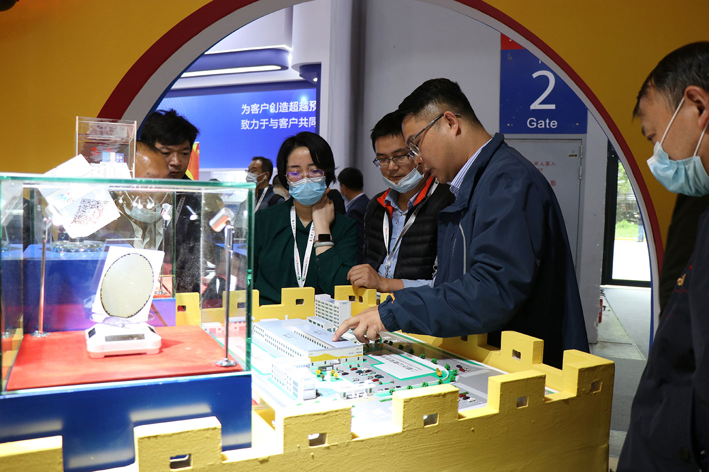 ▲技術(shù)營銷經(jīng)理為客戶介紹5G領(lǐng)域創(chuàng)新防護(hù)方案